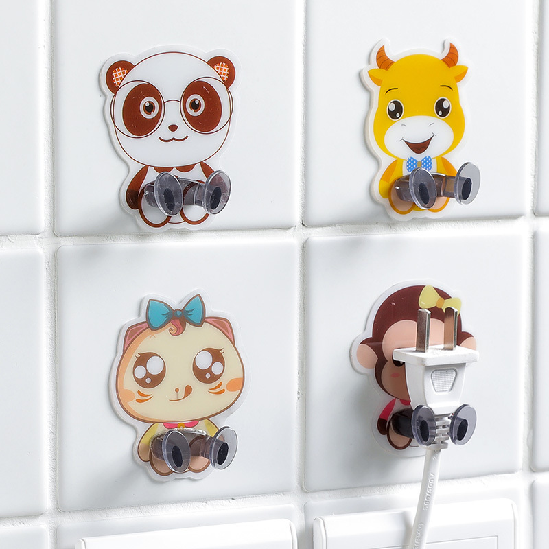 Creative cartoon animal socket receiving hook non - perforating strong cute hook hanging traceless plug finishing bracket