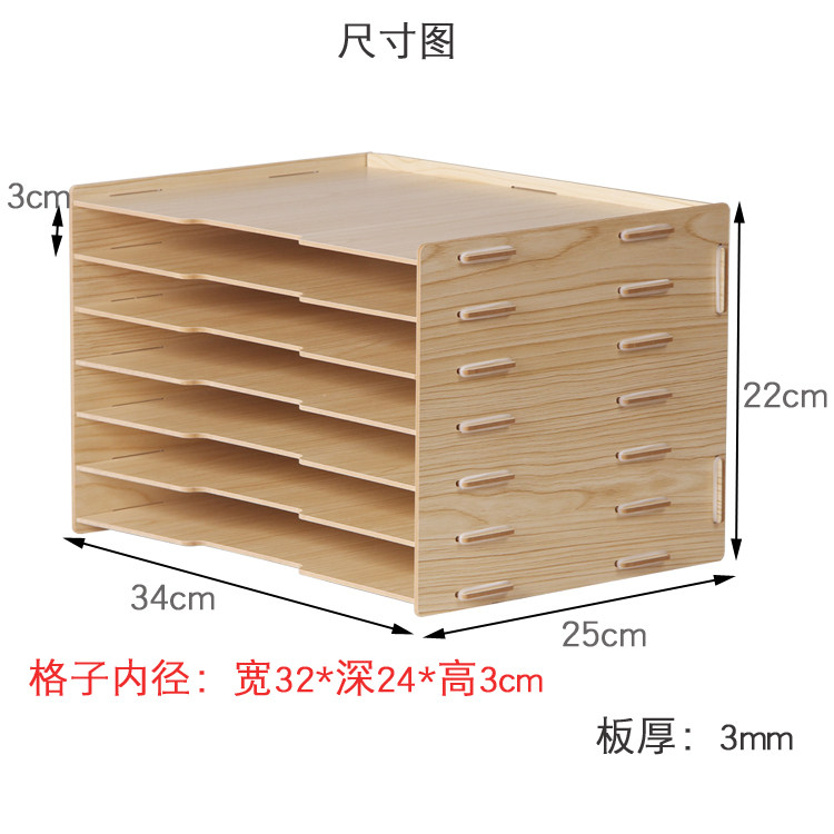 D061 Wooden A4 horizontal seven-layer document rack compartment file cabinet classification shelf Office storage supplies bookshelf