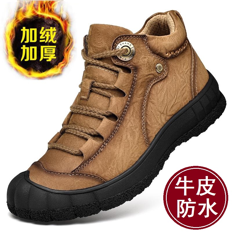 Leisure in the,Casual High-cylinder leather shoes with a high