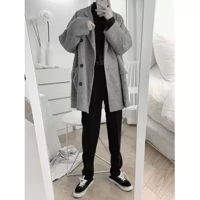 Mr short sentence windbreaker men's medium and long version of retro Korean style loose casual student trend all-match off-the-shoulder autumn and winter