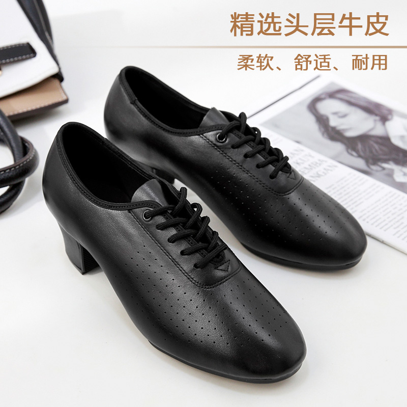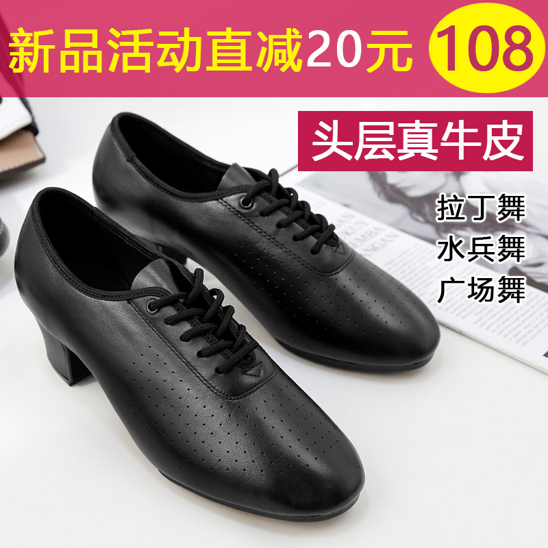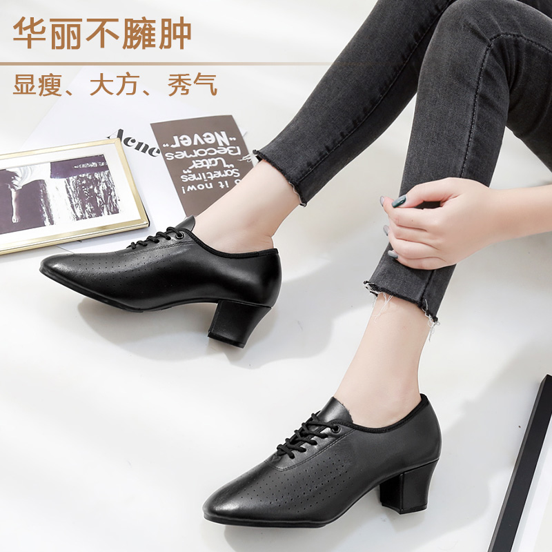 Leather latin dance shoes female teacher adult dance social dance shoes soft bottom sailor square dancer shoes ventilation holes