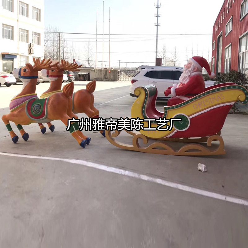 Shopping mall plaza commercial space Meichen spring old man fiberglass model deer pull cart foam sculpture custom