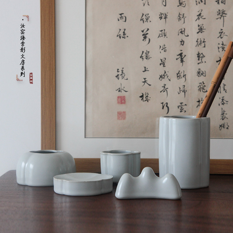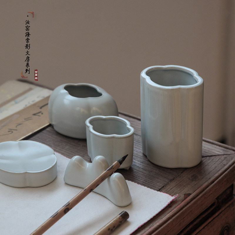 Amanji Ruyao Begonia Pen Holder Ceramic Ruyi Pen Washing kettle Tea washing Calligraphy Four Treasures of Wenfang