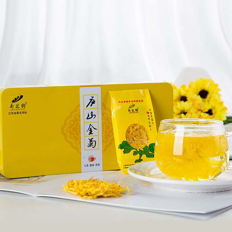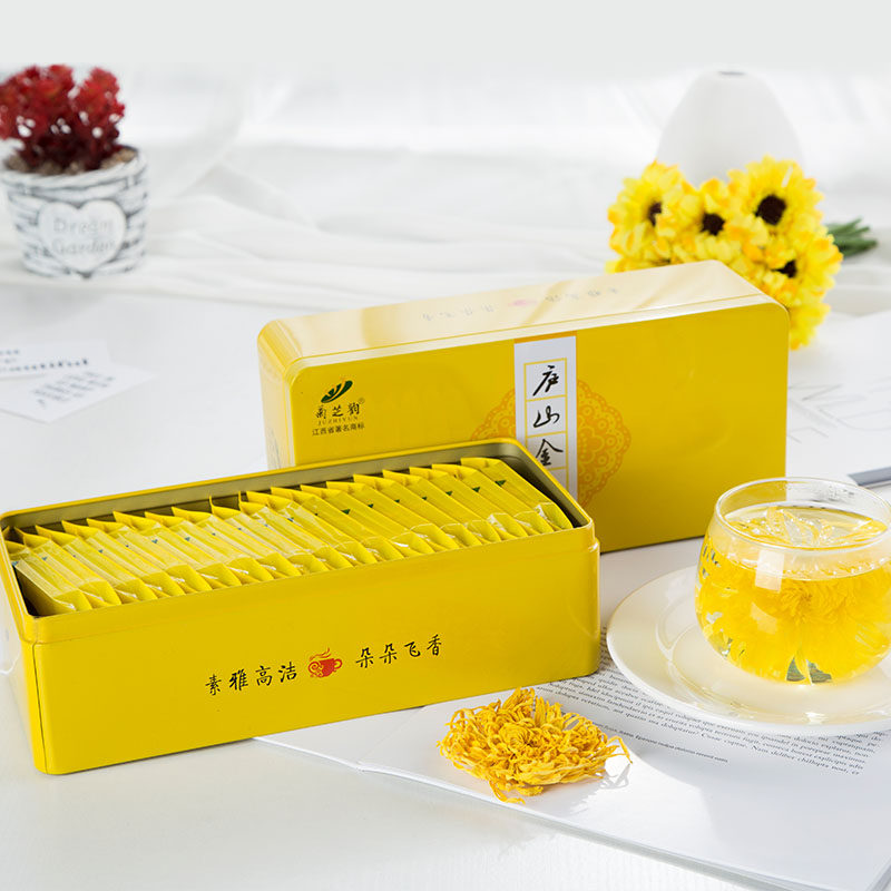 Ju Zhi Yun Lu Shan Jinju 20 iron boxes golden silk Emperor chrysanthemum a cup of large chrysanthemum tea Jiangxi Xiusui Gongju