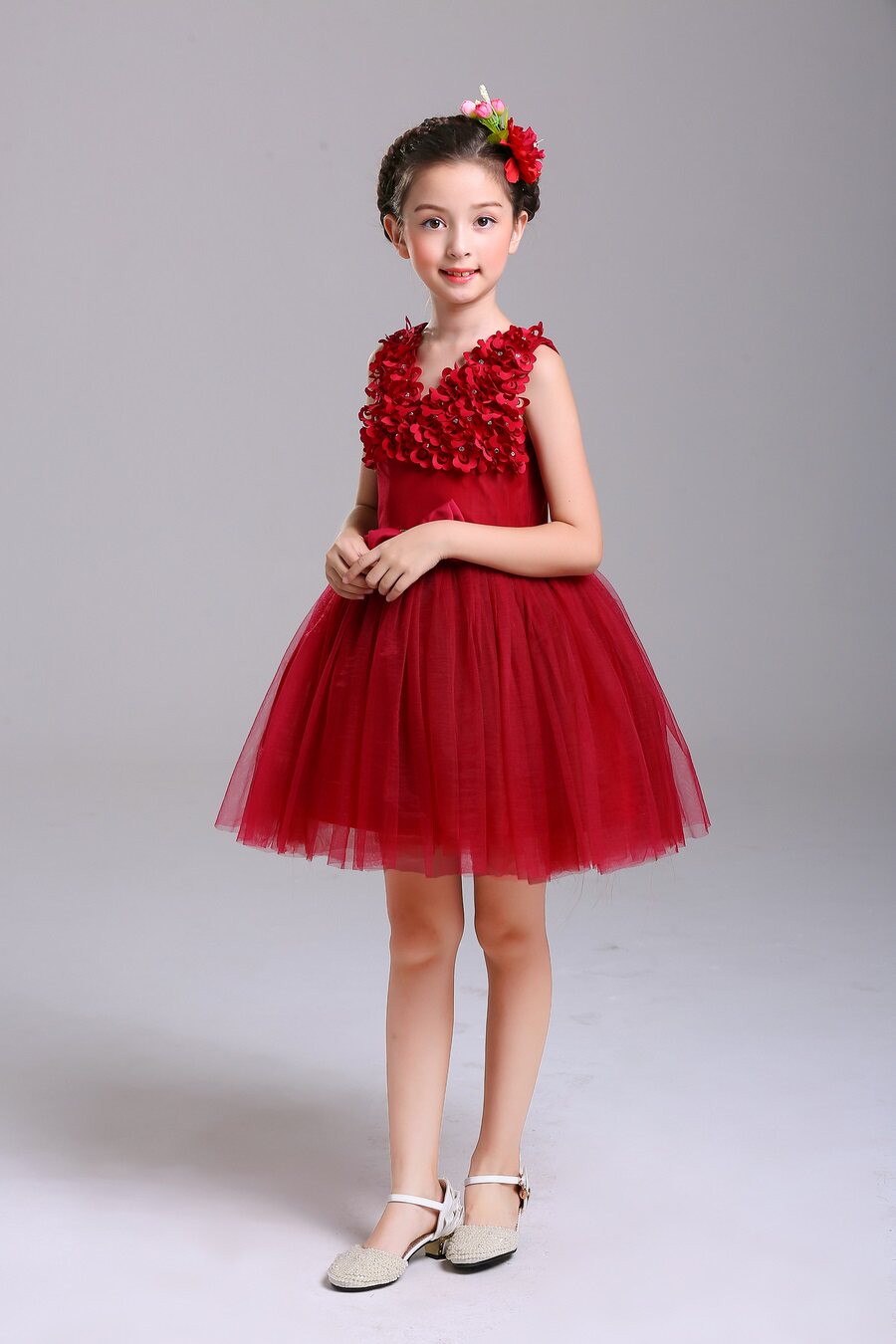 The girl princess dress presides over the New Year's Day primary school students poetry recitation and singing competition cantata class collective performance costume