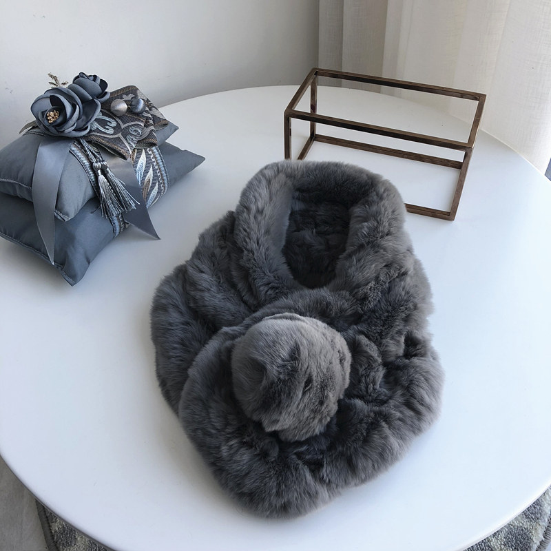 2018 new women's winter scarf Korean version all-match Rex rabbit fur winter girl warm solid color women's scarf