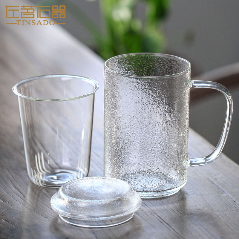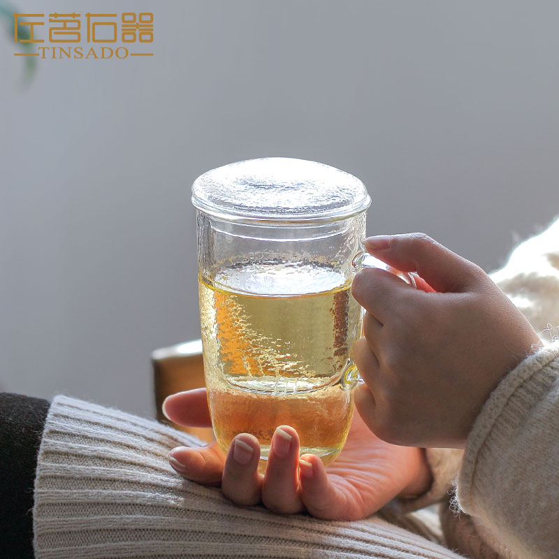Left Tea Right Instrumental Ice Hammer Textured Glass Cup Handle Tea Water Separation Tea Cup Office Thickened Heat Resistant Drinking Cup