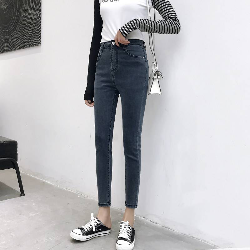 chic Hong Kong-style retro nine-point jeans women's high-waisted slim trousers slimming 2020 spring and autumn skinny pencil pants
