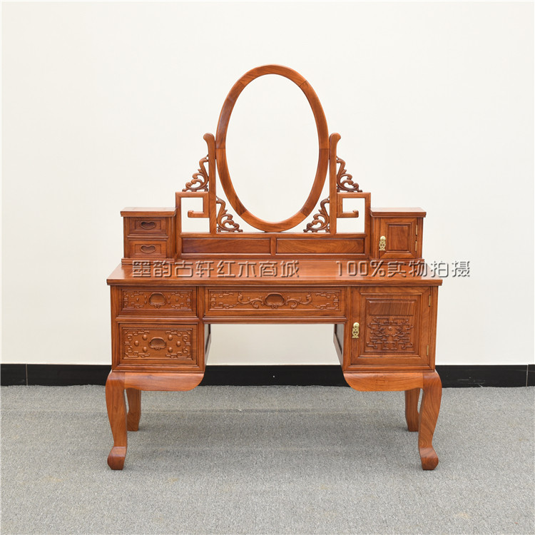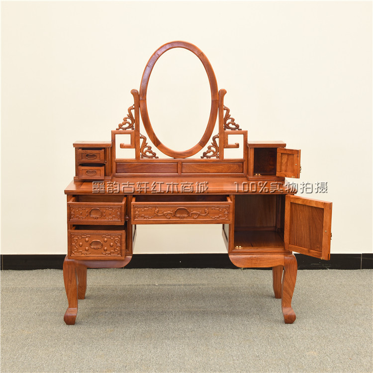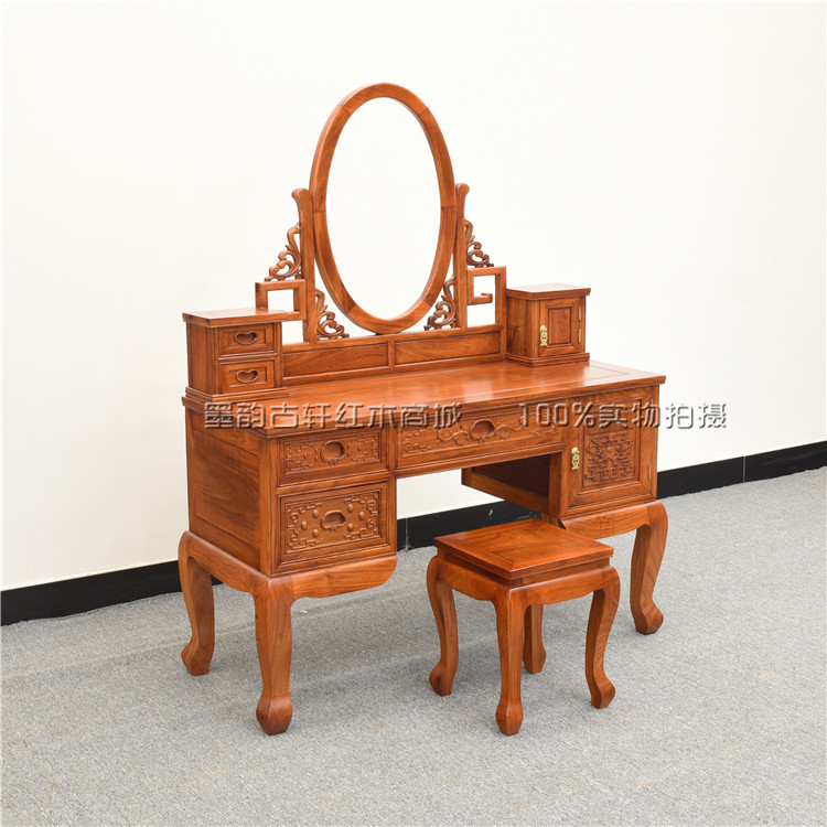 Ink Rhyme Guxuan Mahogany Furniture Burmese Pear Bedroom Chinese Style Carved Dressing Table Dressing Stool Combination Antique Dressing Table