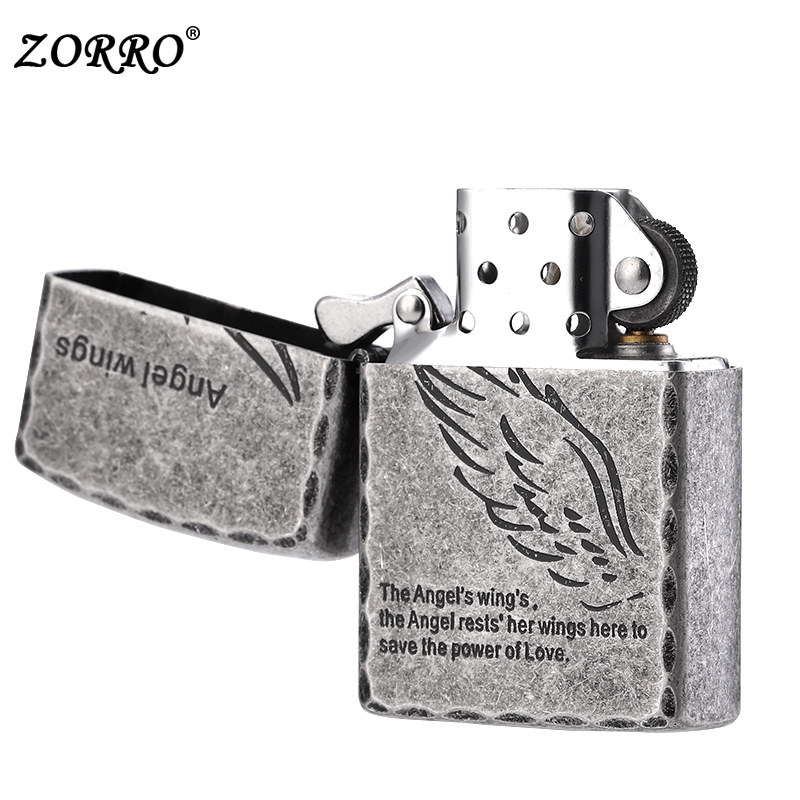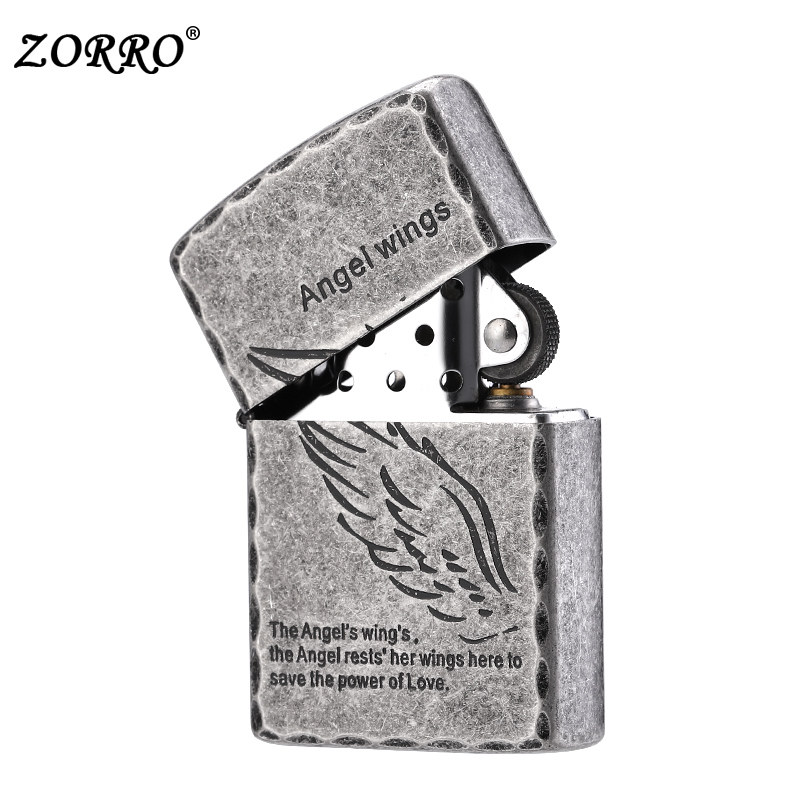Zoro kerosene lighter Angel's wings personality retro wind anti-wind men creative gift custom engraved