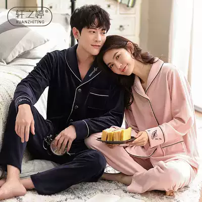 Winter couple pajamas coral velvet thin velvet thin female Korean autumn and winter Island velvet padded home suit men