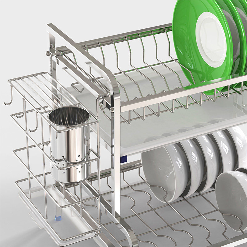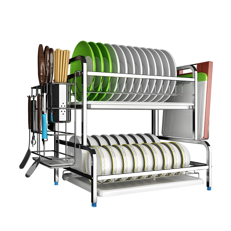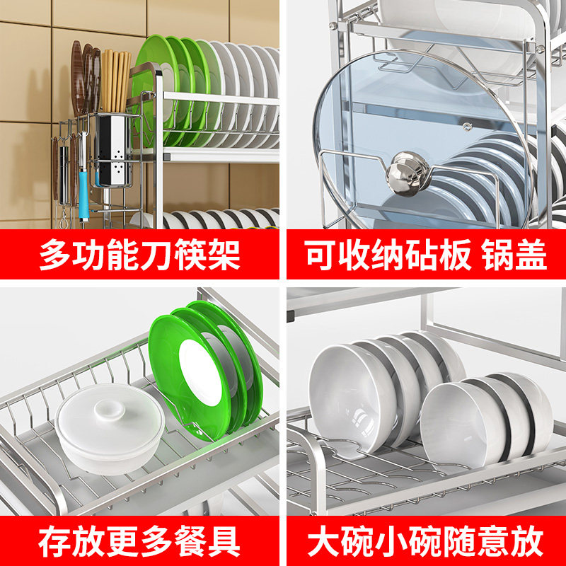 304 Stainless Steel Double Layer Drain Bowl Rack Tray Saucer Holder chopstick cylinder Vegetable Chopping Knife Rack of Airing Bowl Tray Cabinet