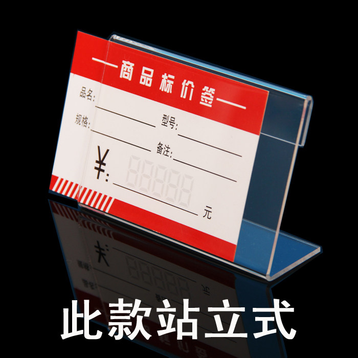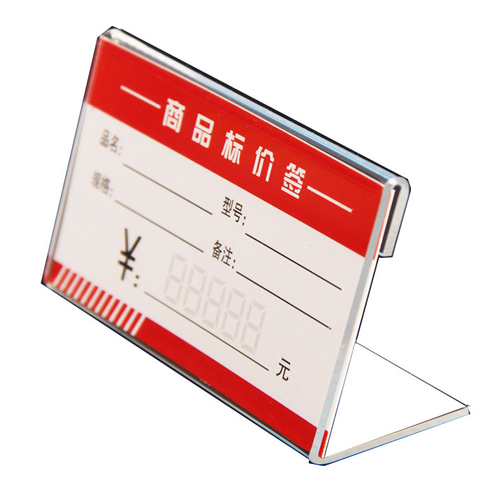 Acrylic desk card L-shaped price card wall sticker label price card transparent table card POP stand brand product display card