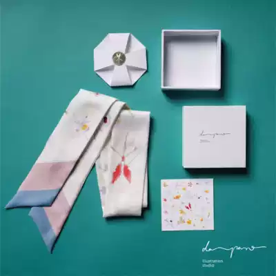 Daparo Blue original design silk twill silk female streamers ribbon scarf Wild hairband hairband Tanabata gift