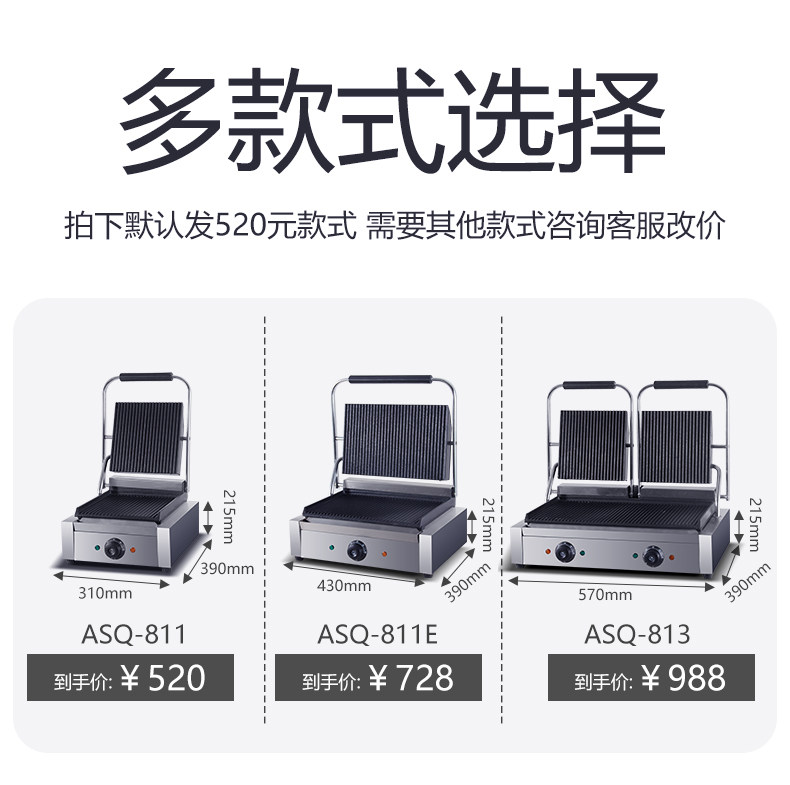 Eschic electric heat double head pressure plate pickpocket oven commercial single-head panini machine triveal roasting machine frying steak machine