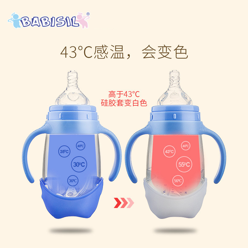 Belle Hin Wide Caliber Glass Straw Bottle Milk Bottle Infant to catch warm silicone protective sheath with straw handle