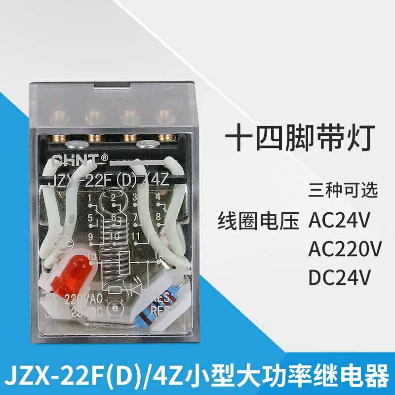 Zhengtai relay JZX-22F (D) 4Z small intermediate relay with lamp 14 foot relay DC D220V