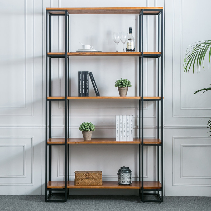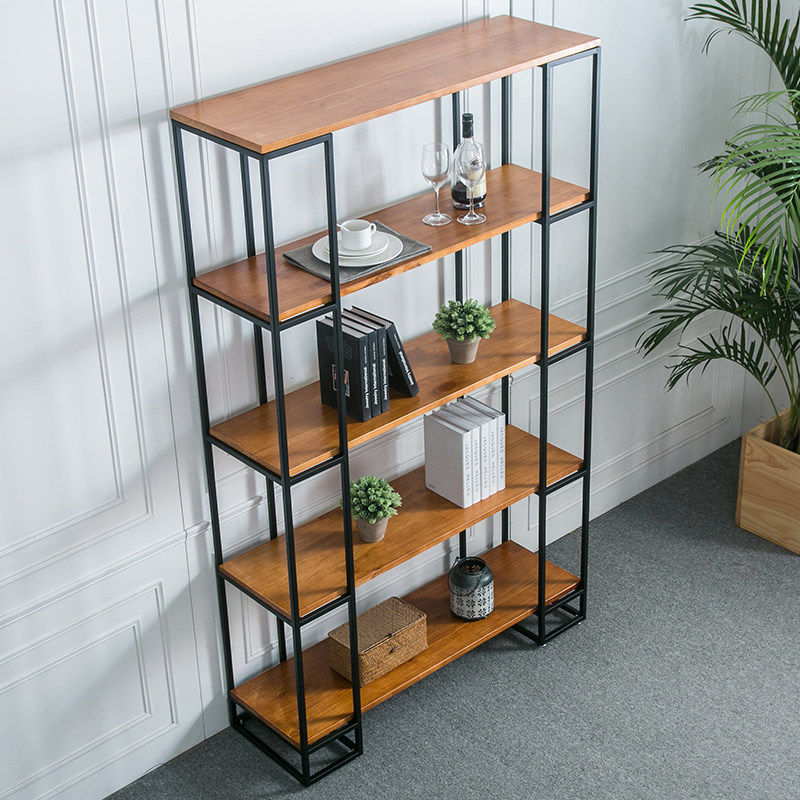 Solid wood Wrought iron entrance floor shelf Display shelf Industrial wind partition Creative multi-layer bookshelf