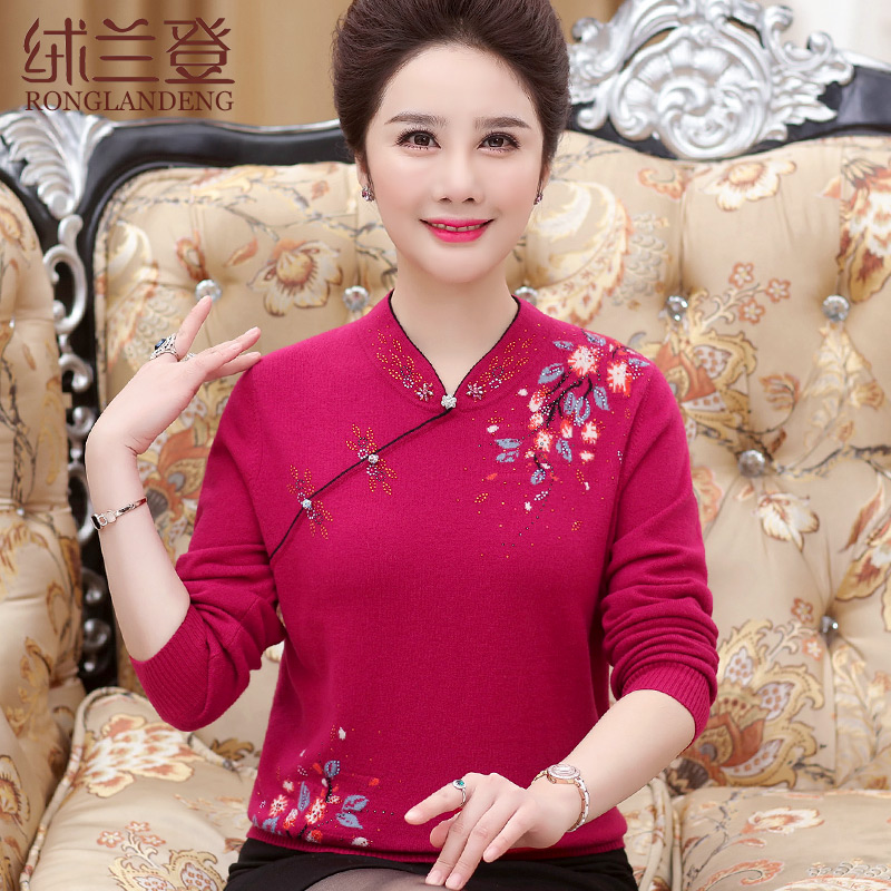 Mom dressed in autumn and winter flaggown, pie wool 40 years old 50 middle old woman winter dress sweater 60