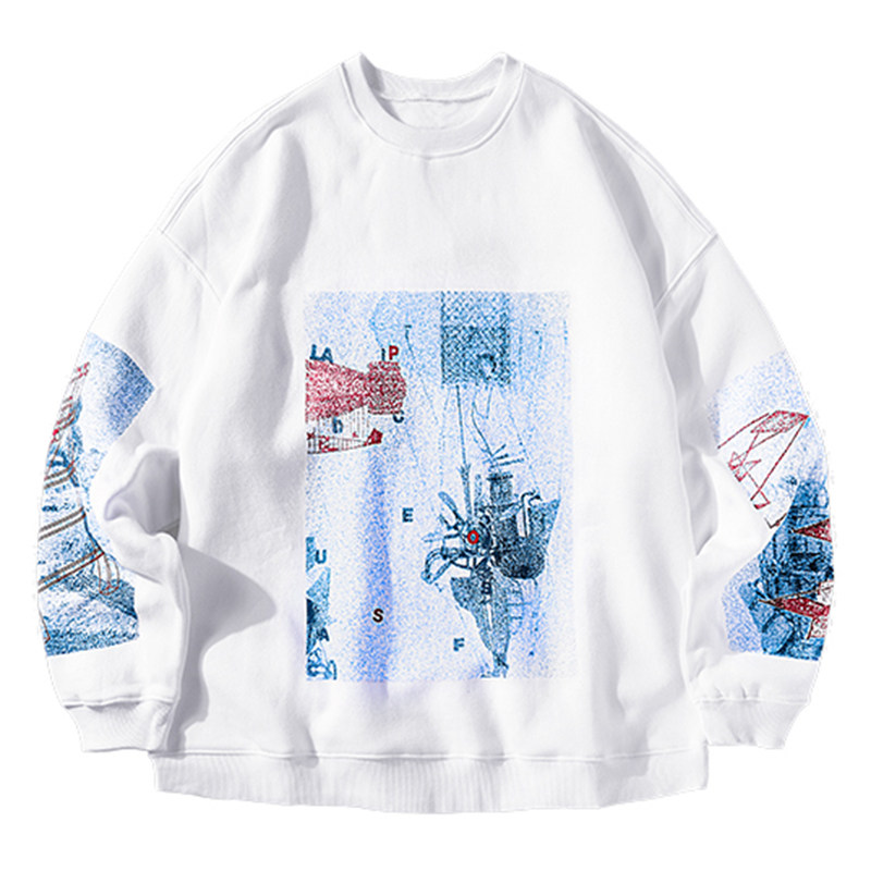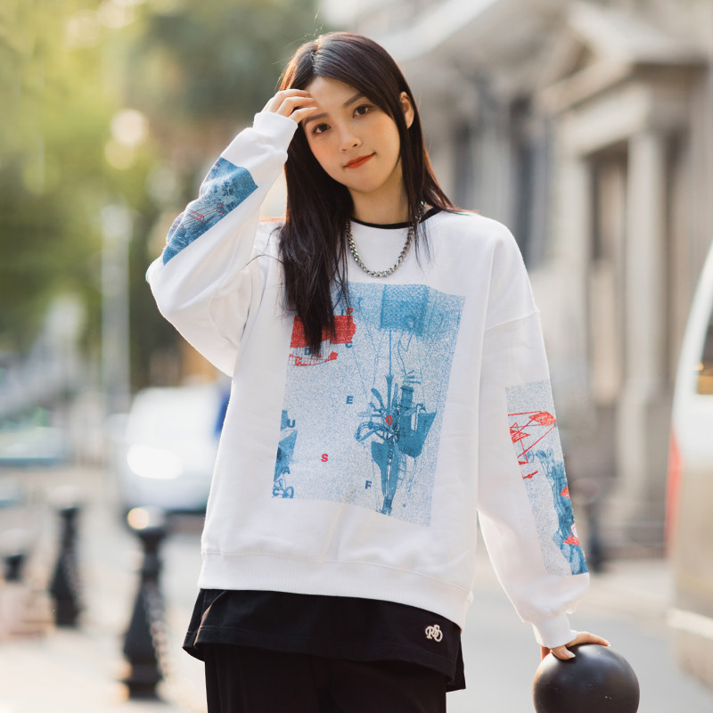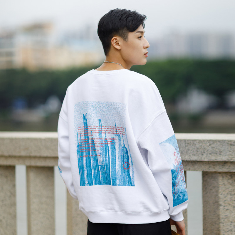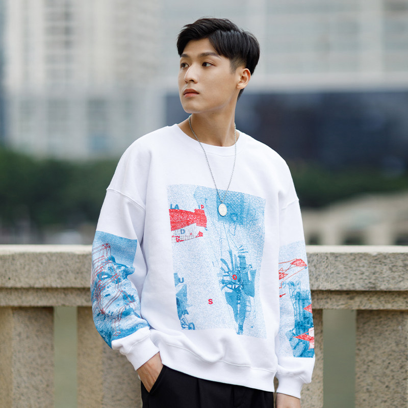 PSO Brand red, white and blue printed round neck pullover fleece thick cotton T men's 2021 new trendy brand couple jacket