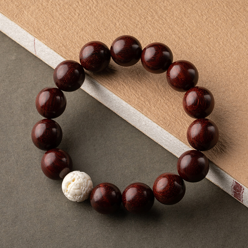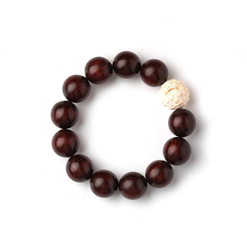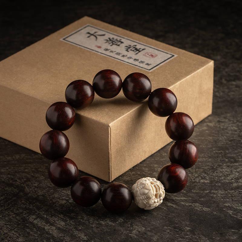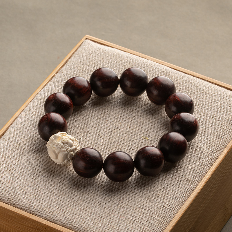 Grand Good Hall Original Design Small Leaf Purple Sandalwood Bracelet for Men's Mammoth Tooth Engraving of the Leopard of the Leopard Wealth Rolling Hand Alchemy