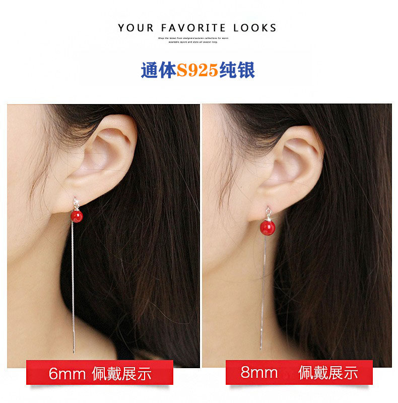 Tonbody 925 pure silver red pearl diameter 6mm pair through body 925 pure silver red pearl diameter 8mm pair through body 925 pure silver red bead diameter 10mm pair through body 925