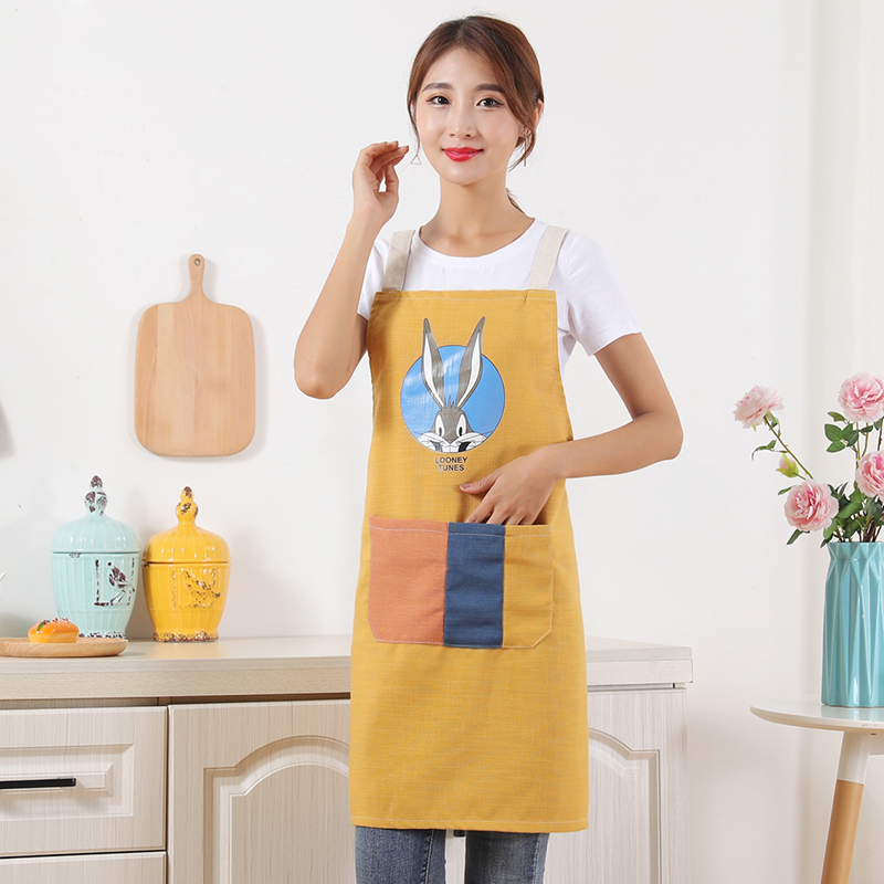 Apron cooking wearing cotton cotton household kitchen working clothesdress with apron cute day logo