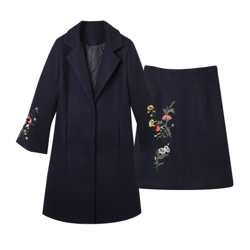 The Ocean Pie Fur Suit Dress Woman 2022 New Temperament Mid-Length Version Coat Plus Skirt Spring Autumn Season Two Sets