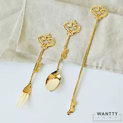 Spot Japanese imported elfin high Mulberry metal key gold-plated diamond dessert spoon snack fork stirring rod