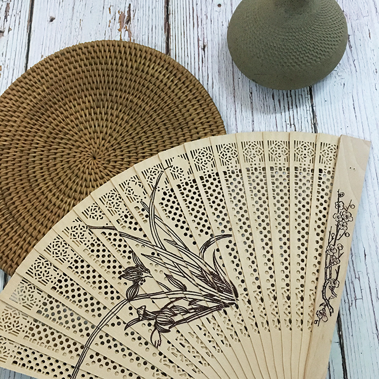 Fan Mese Incense Fan China Wind Ancient Wind Classical Hollowed-out Craft Gift Fan Sandalwood Fan-folding fan-sending fan box