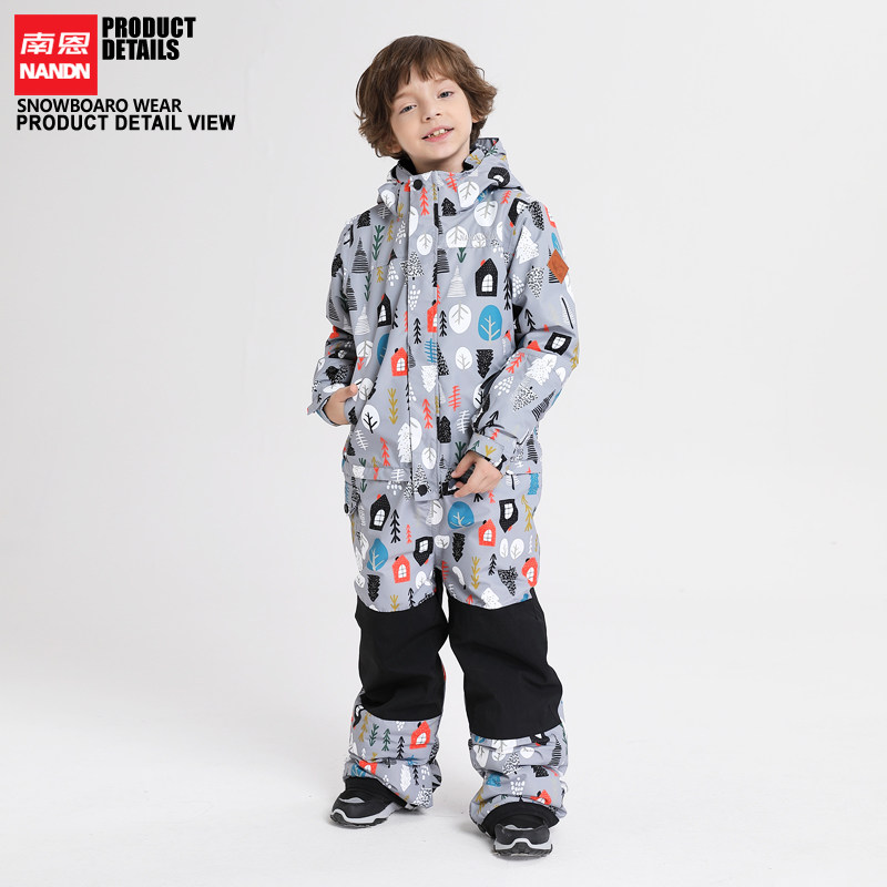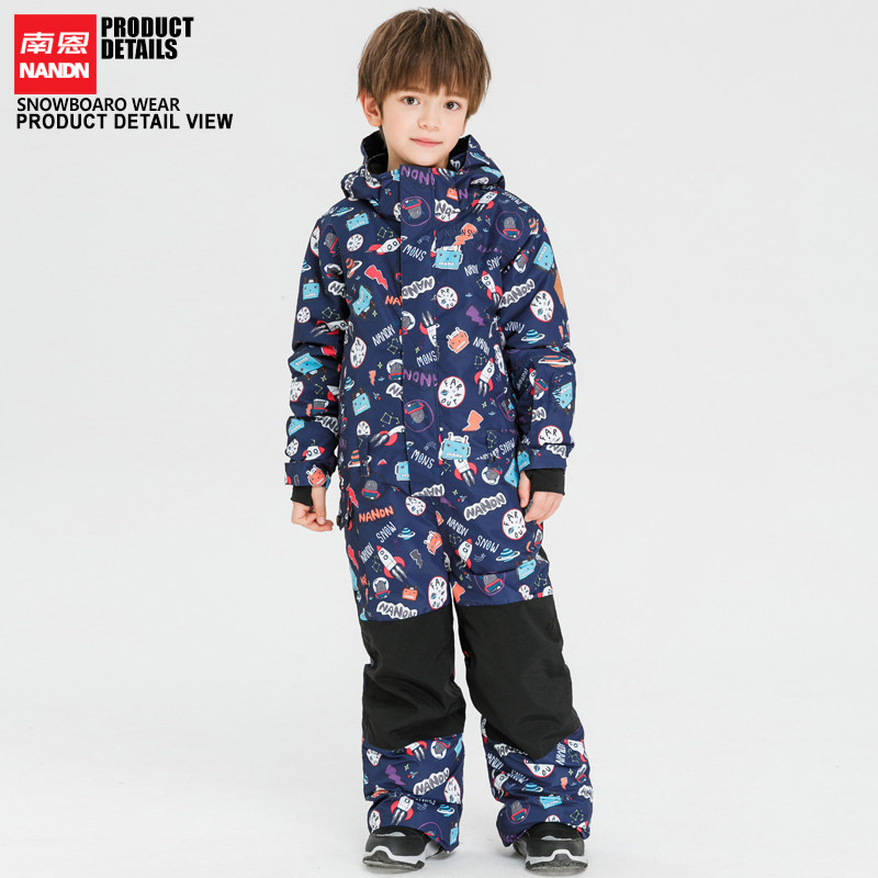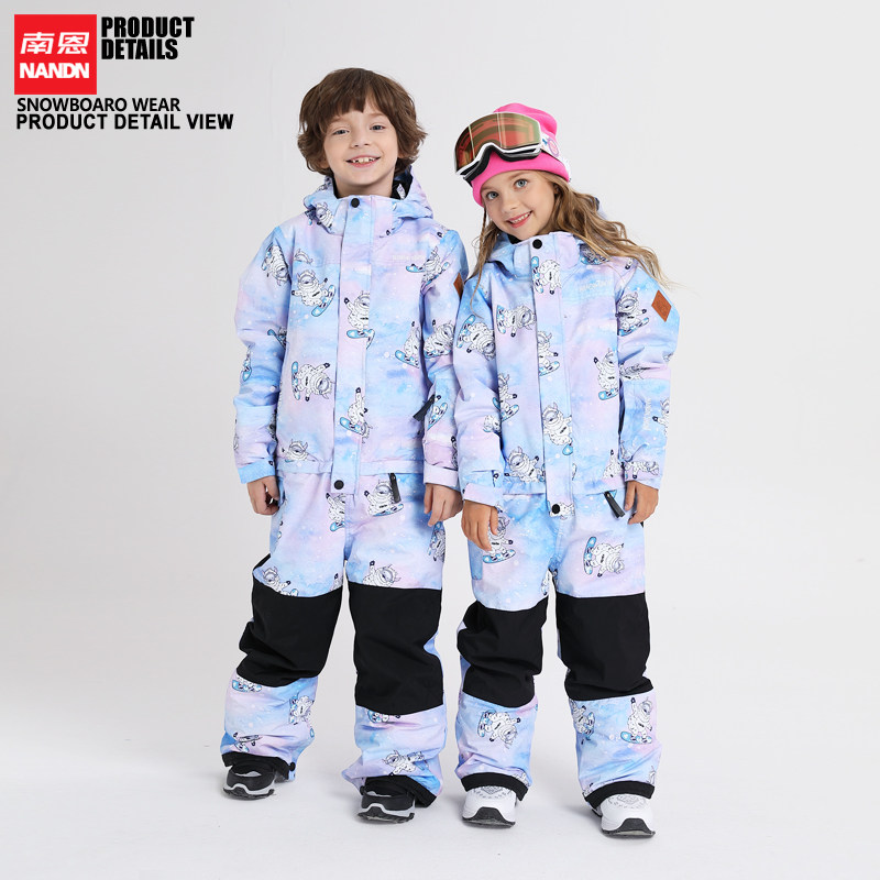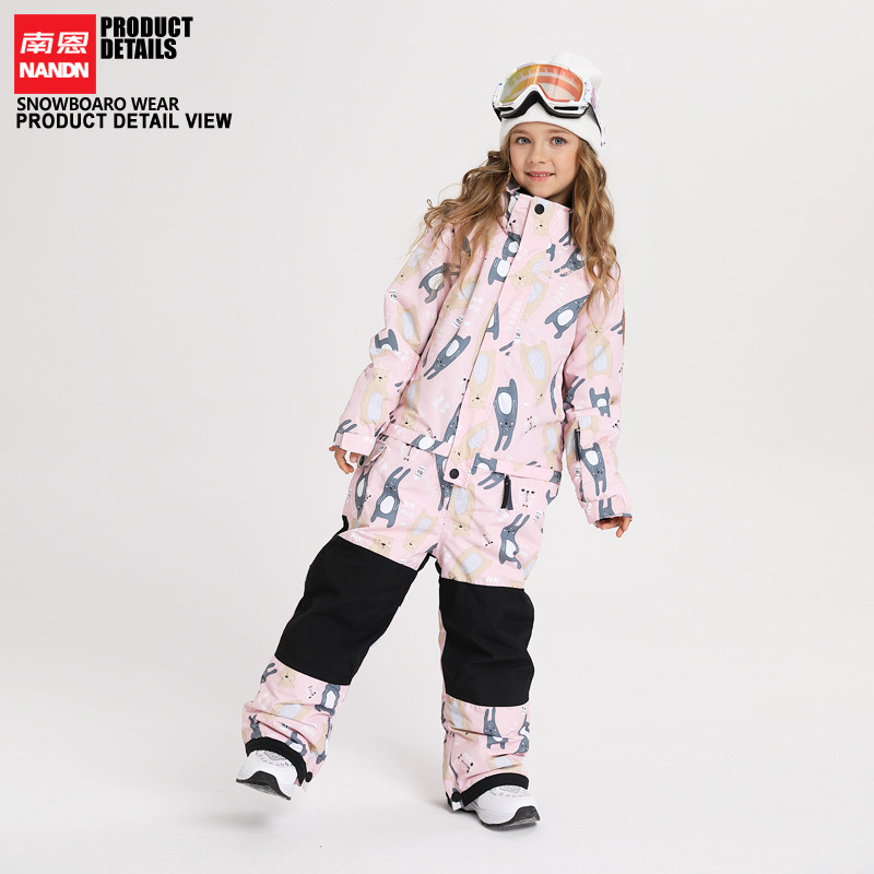 NANDN Children's one-piece ski suit thickened waterproof men's and women's ski clothes ski pants set