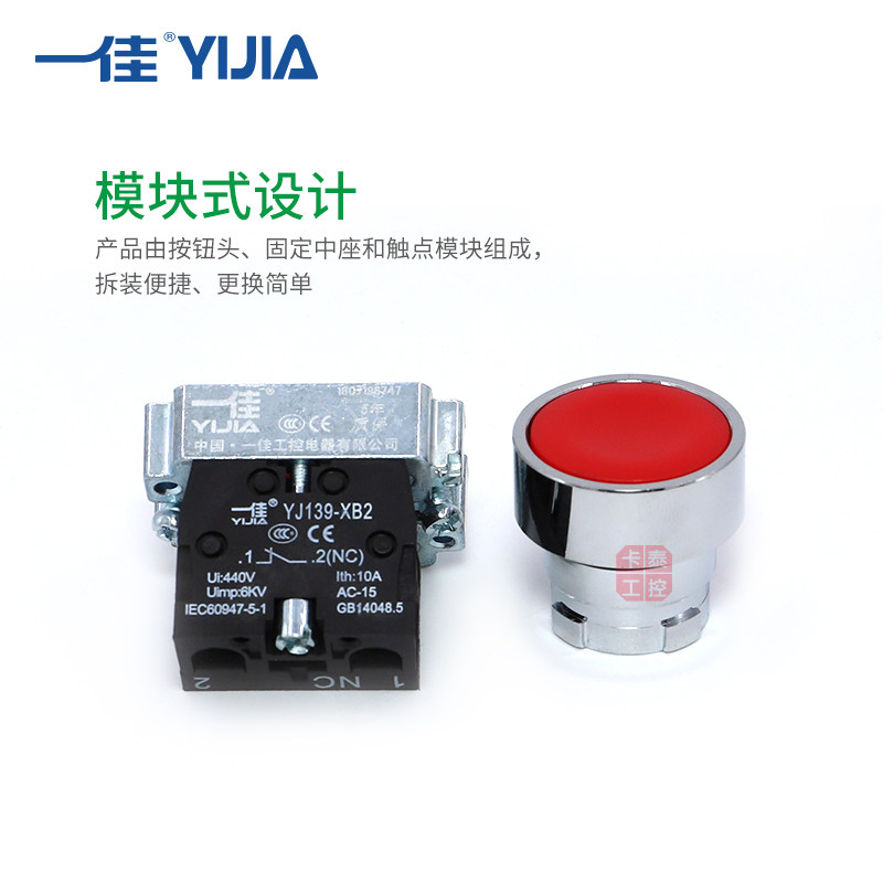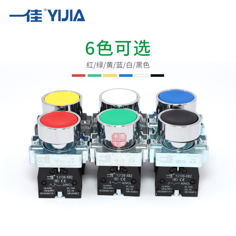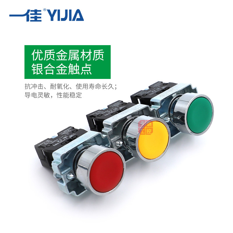Metal button switch self-recovering silver contact Yijia XB2-10 01BN 11BN red, green and yellow 22mm environmental protection 3C