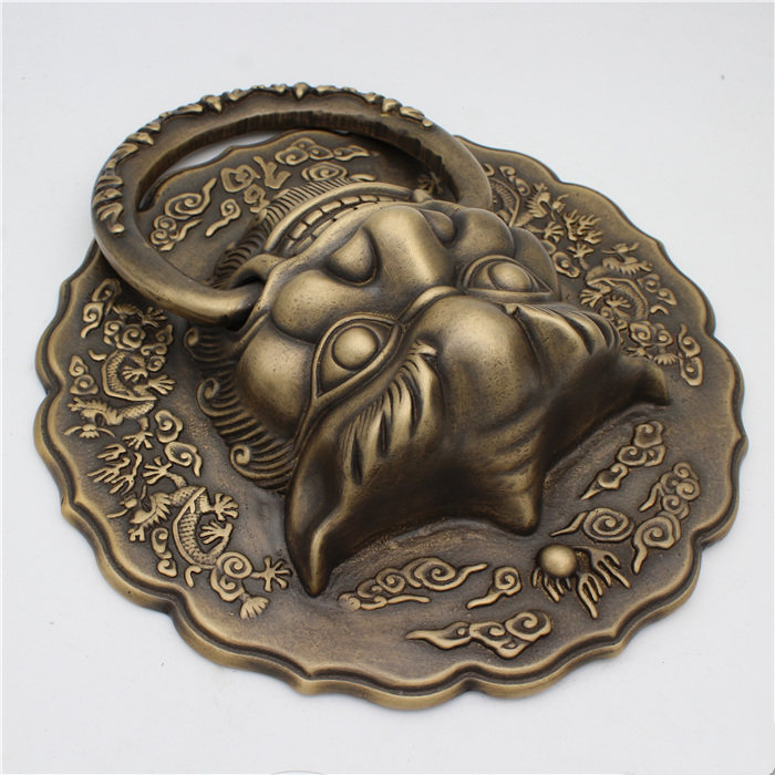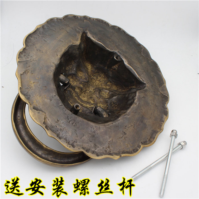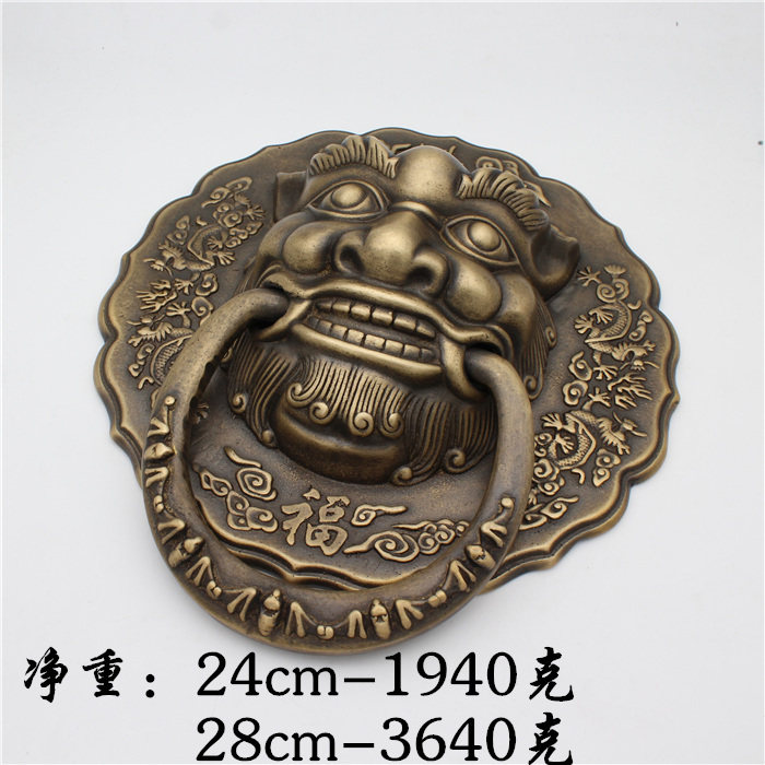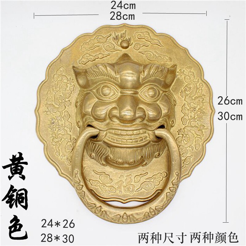 Chinese-style door handle antique pure copper lion head Ming-installed classical door handle glass door handle door ring beast head