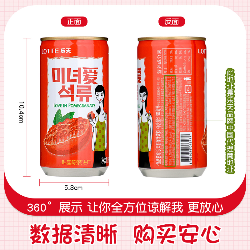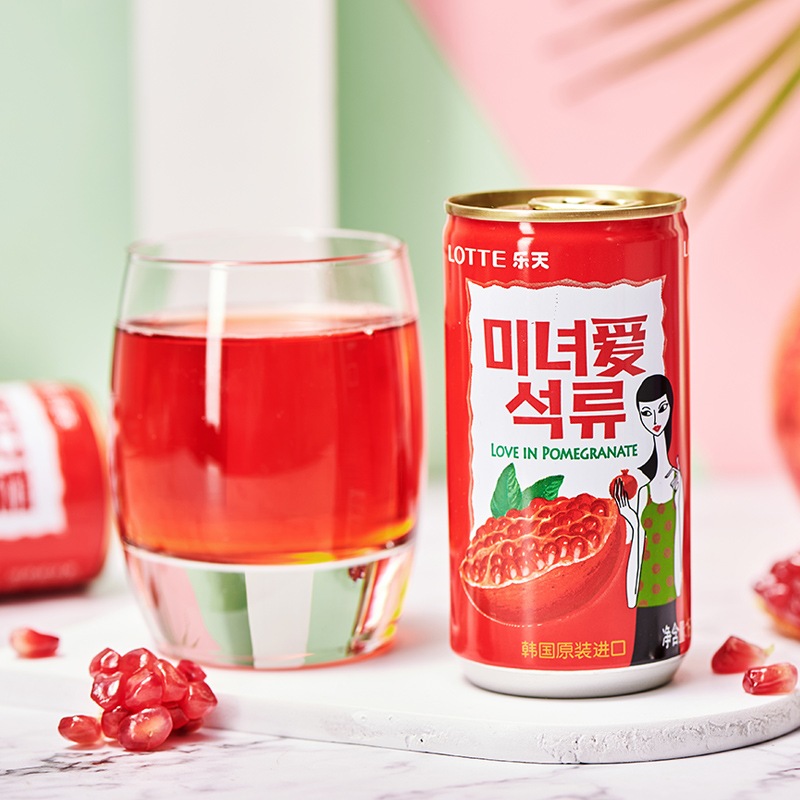 Whole box of Korean imported drinks Whole box Lotte beauty pomegranate juice 180ml*15 cans fruity juice