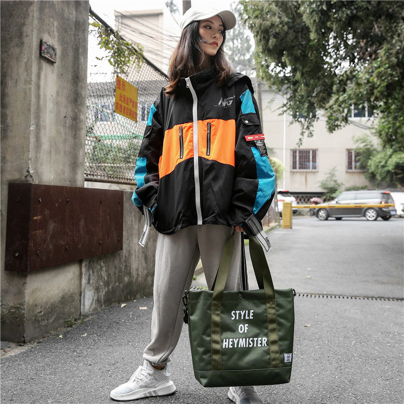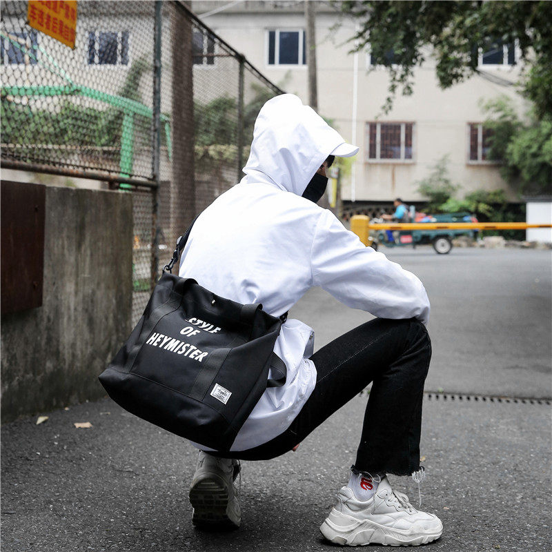 Japanese tide brand English alphabet printing men's shoulder bag large-capacity handbag canvas casual cross-body bag shopping bag