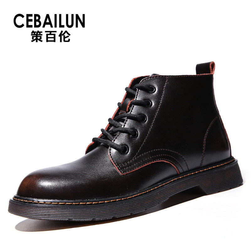 Martin Boots Man Fall Middle Barrel Men's Short Boots Trend Inlun Wind Leather Boots High Cylinder Leather Shoes Korean Version Big Boots Man