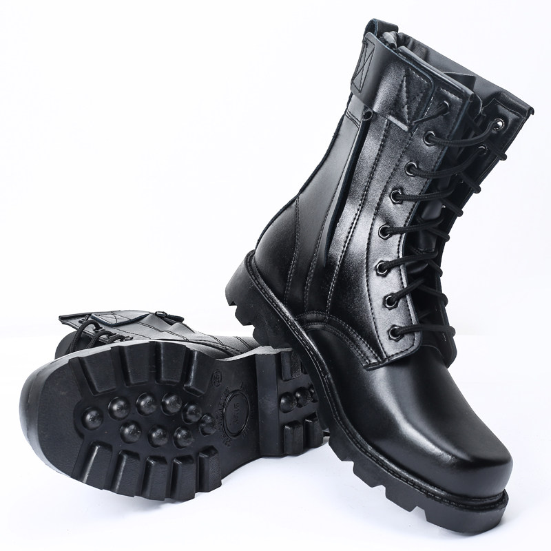 Summer black security combat training shoes high leather boots autumn and winter thickening and velvet wear-resistant security training shoes canvas rubber shoes