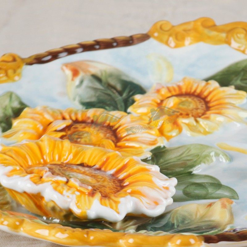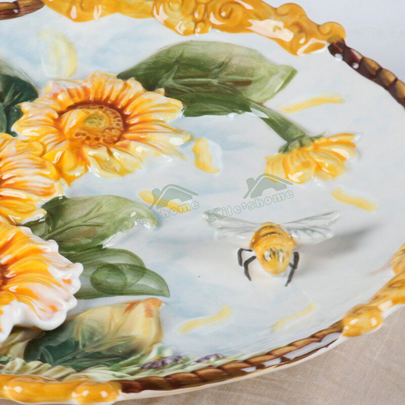 Sunflower Countryside Style Ceramic Decoration Pan Solid Wall Hanging Disc Home Decoration Craft Tray New Residence Furnishing