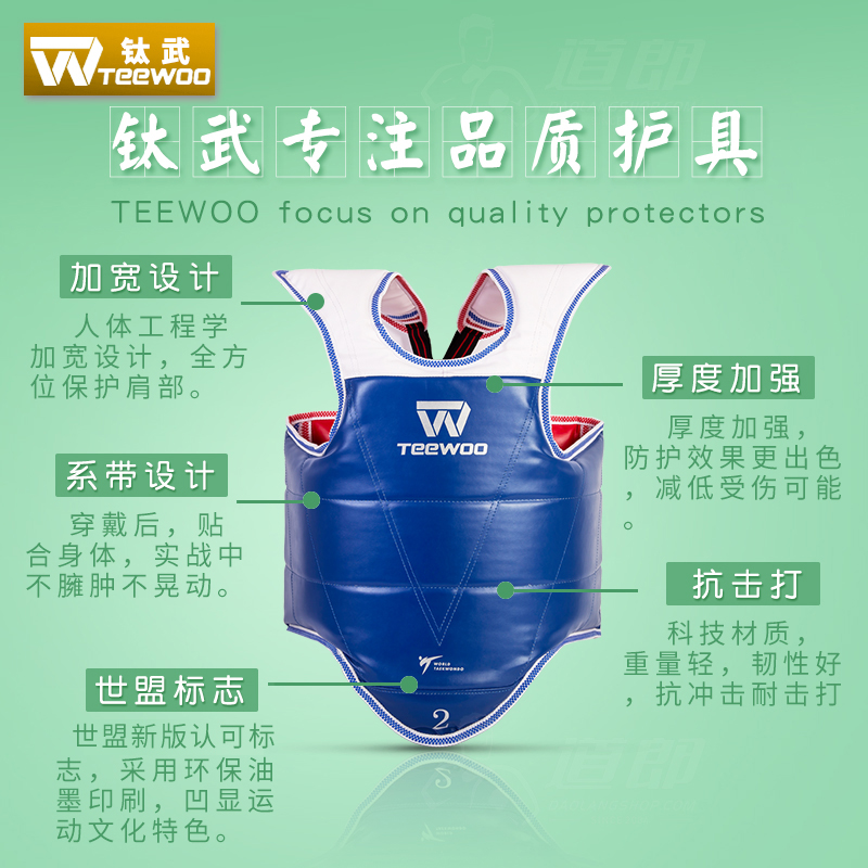 Groom TEEWOO Titanium Wu Quality Taekwondo Guard Competition Training Red Greens (Blue) Side Double Face With Breast Protection Chia