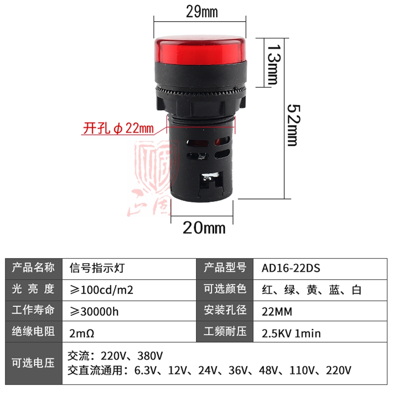 LED indicator light AD16-22DS Power signal light Distribution box AC DC12V24V220V Drilling 22mm