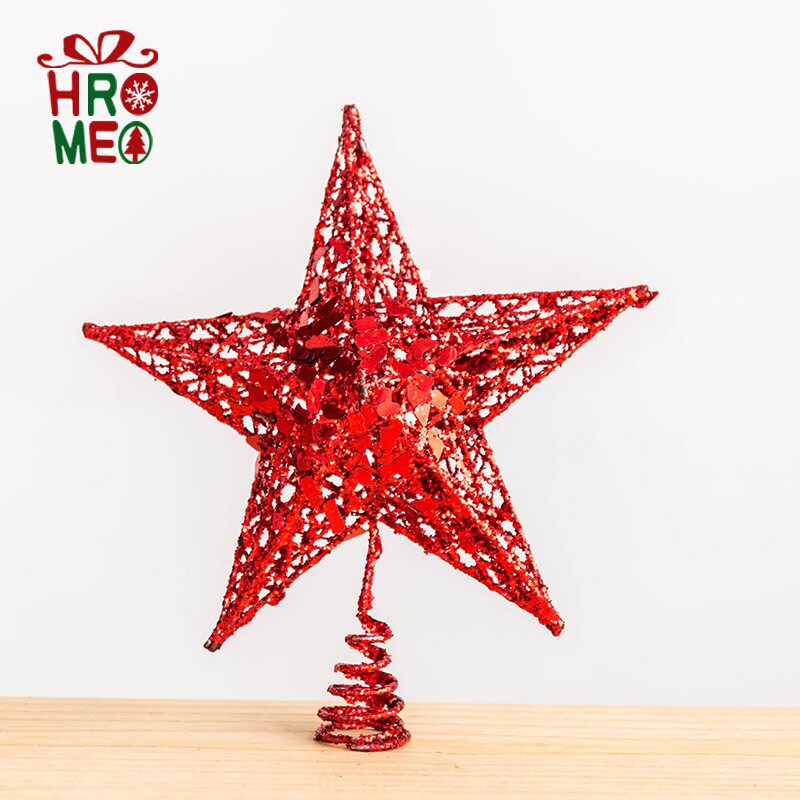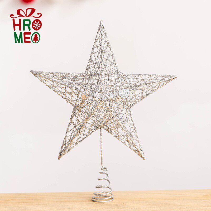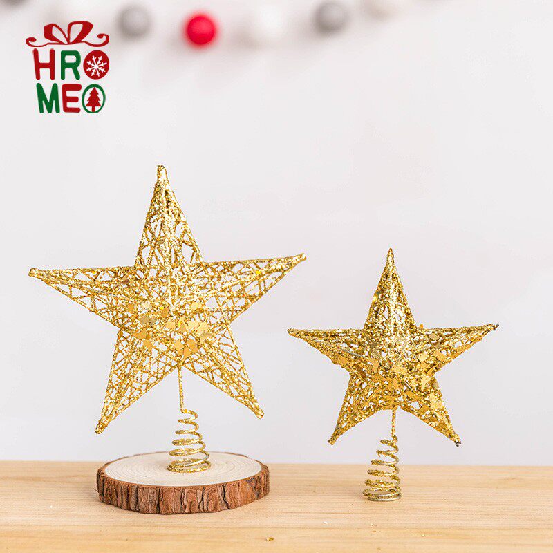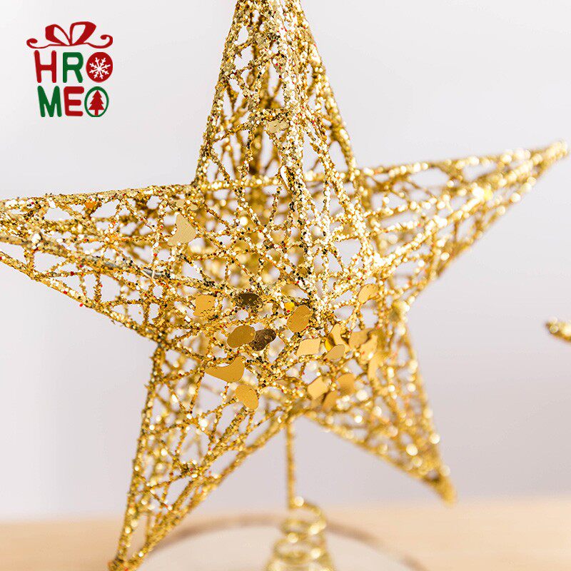 Hromeo Iron Art Sparkling Silver Golden Stars Pentagram Christmas Tree Top Decorated Top Star Christmas Decorations