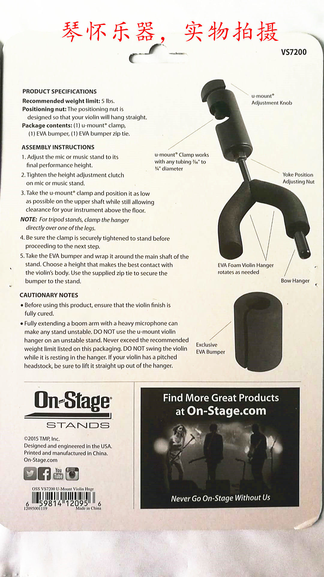American on-stage violin score frame hook bracket clamp bow hook rod diameter below 20mm available