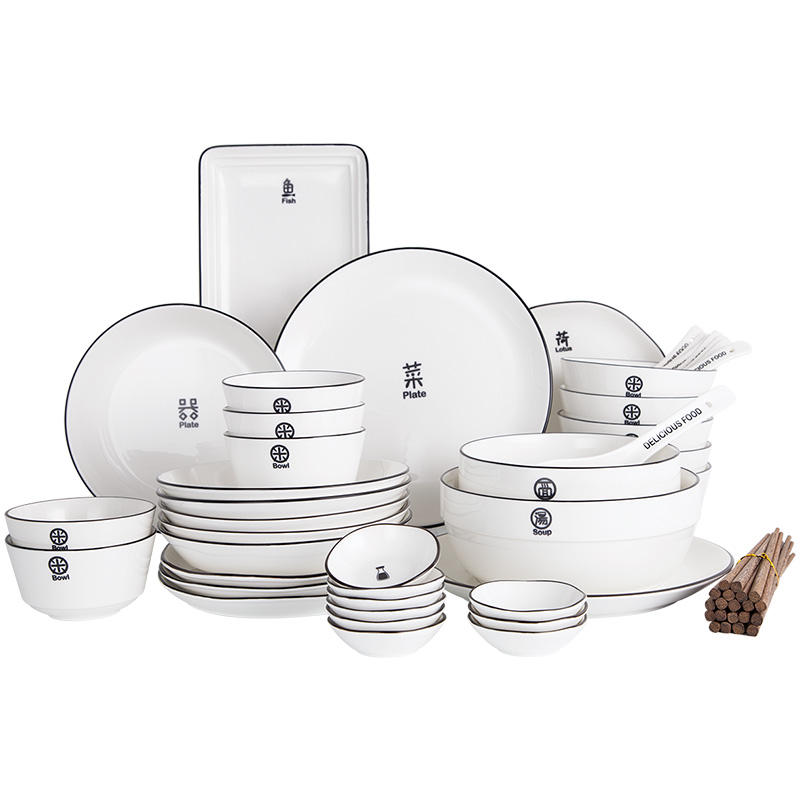 5 5-inch rice bowl, 8-inch soup bowl, 10-inch shallow plate, fish plate, 2 small soup spoons, chopsticks (pack of 5)