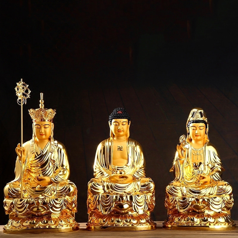 Taiwan BW pure copper Buddha statue is dedicated to Saha three saints Sakyamuni Buddha Buddha Kizang King Guanyin Bodhisattva Buddha statue at home