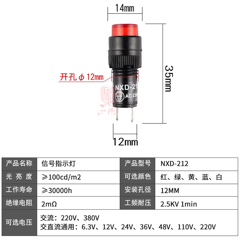 LED indicator NXD-212 Small power signal lamp welding foot AC DC12V24V220V bore 12mm