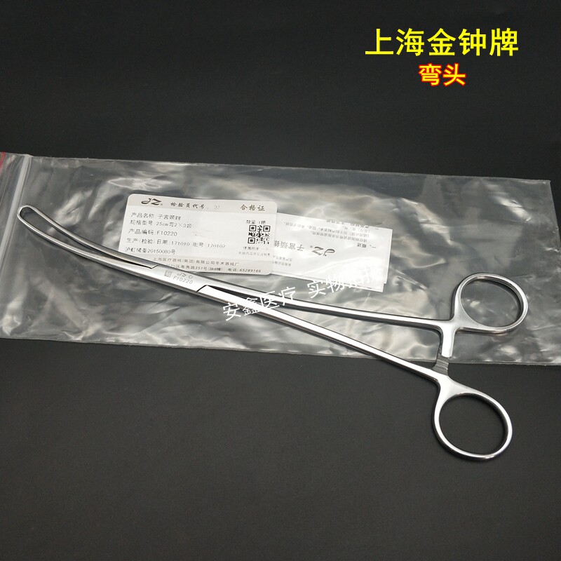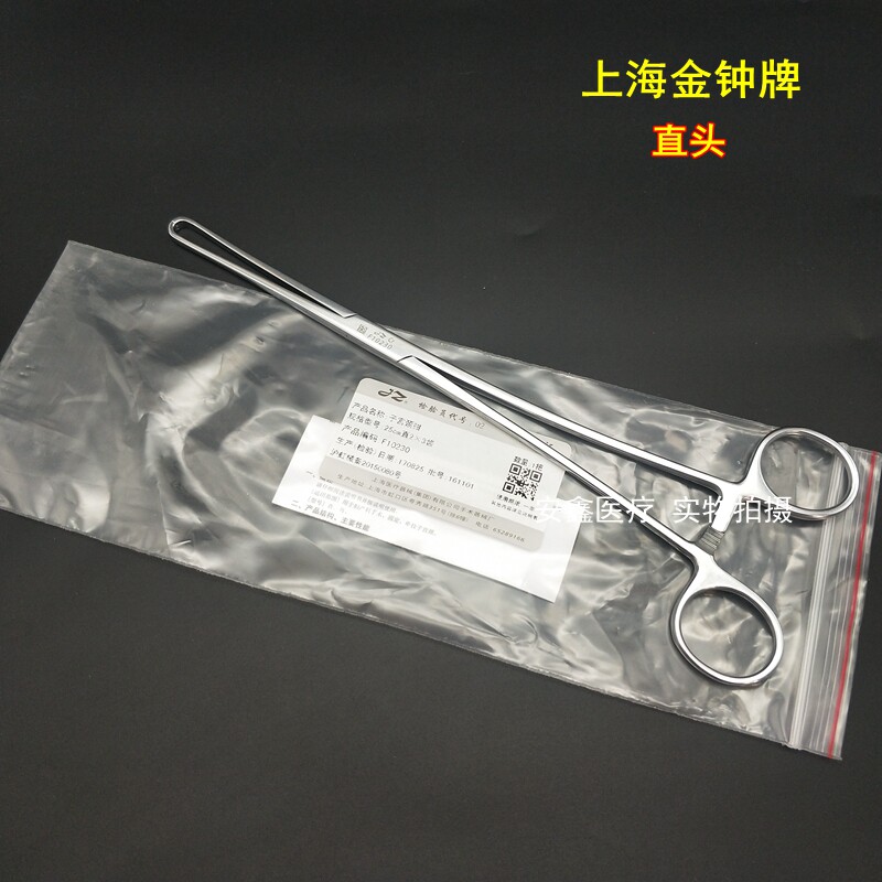 Medical Uterus Pliers Shanghai Admiralty Cervical Pincers Stainless Steel 25cm Straight Elbow 2 * 3 Teeth Gynecological Cervical Pincer Clamp