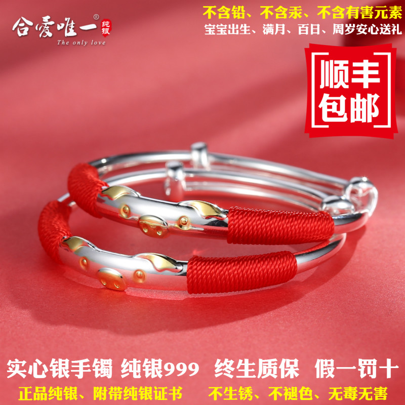 Baby Pure Silver Bracelet S999 Foot Silver Butterfly Knot Girl Bracelet Brief Fashion Children Silver Adorned Full Moon