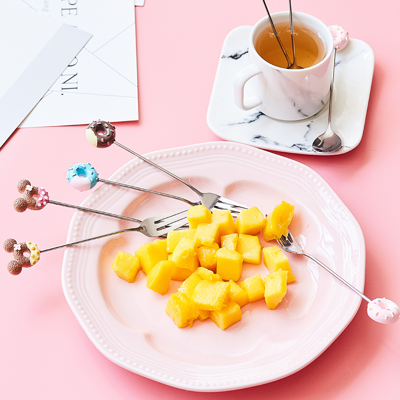 Life Tree Cute Cartoon Stainless Steel Fork Spoon Creative Resin Head Handle Coffee Spoon Children Fruit Fork Sweet Spoon