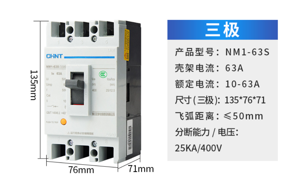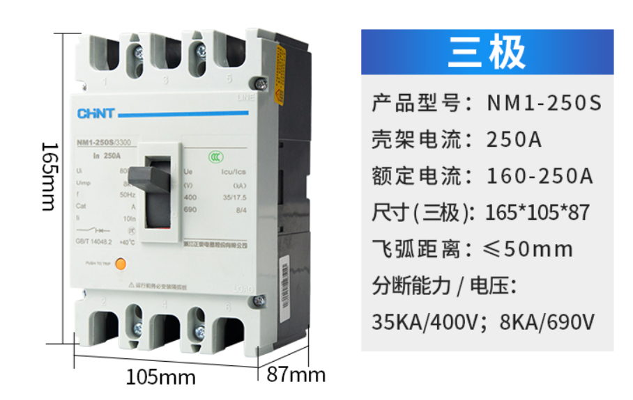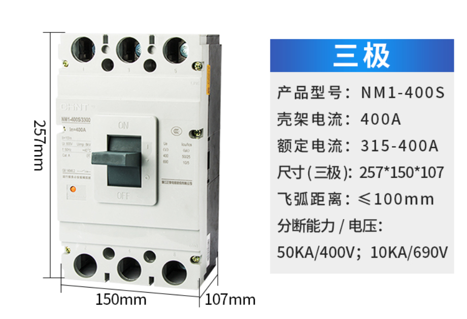 Zhengtai NM1 plastic shell breaker 125A250A400A630A air switch 3300 three-phase three-wire 380V3P
