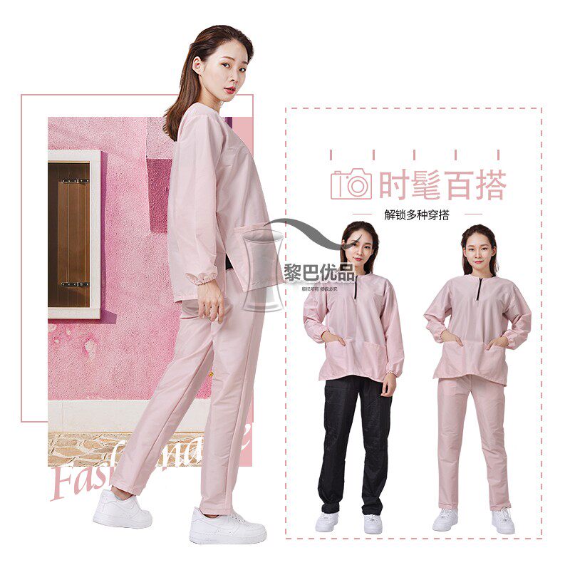 Pink suit pink blouse black long pants pink long sleeves pink long pants black long pants not waterproof black long pants anti splash water